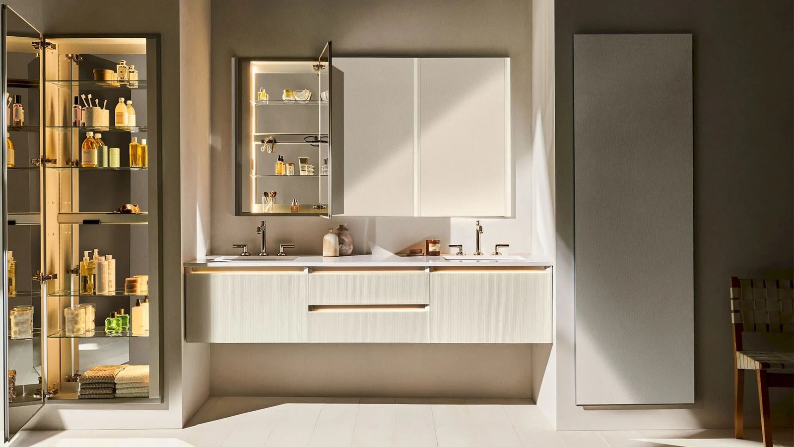 Crafted with moisture-resistant engineered wood or solid oak, these vanities blend minimalist aesthetics and functional storage. Choose from floating designs (saving floor space) or floor-standing units with soft-close drawers and quartz countertops. Integrated LED backlit mirrors and pre-drilled faucet holes simplify installation. Ideal for modern bathrooms seeking clutter-free organization and durable surfaces against humidity.