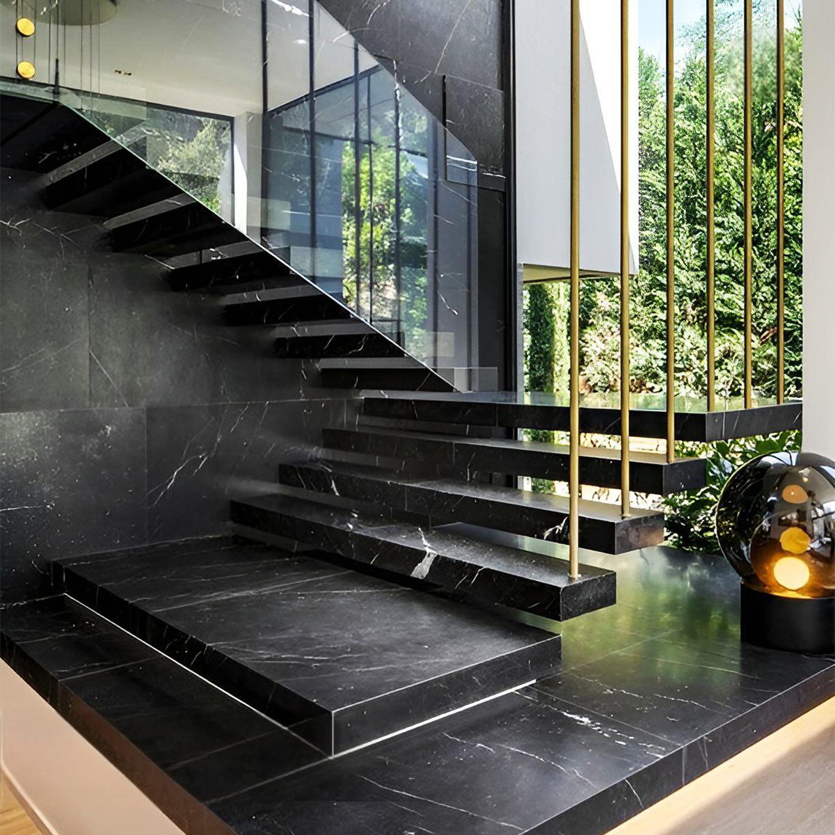 Granite stair treads ensure safety with textured, anti-slip surfaces. Engineered to bear heavy loads, they blend practicality with the stone’s natural speckled beauty. Ideal for grand entrances or garden steps in Jet Black or Colonial White finishes.